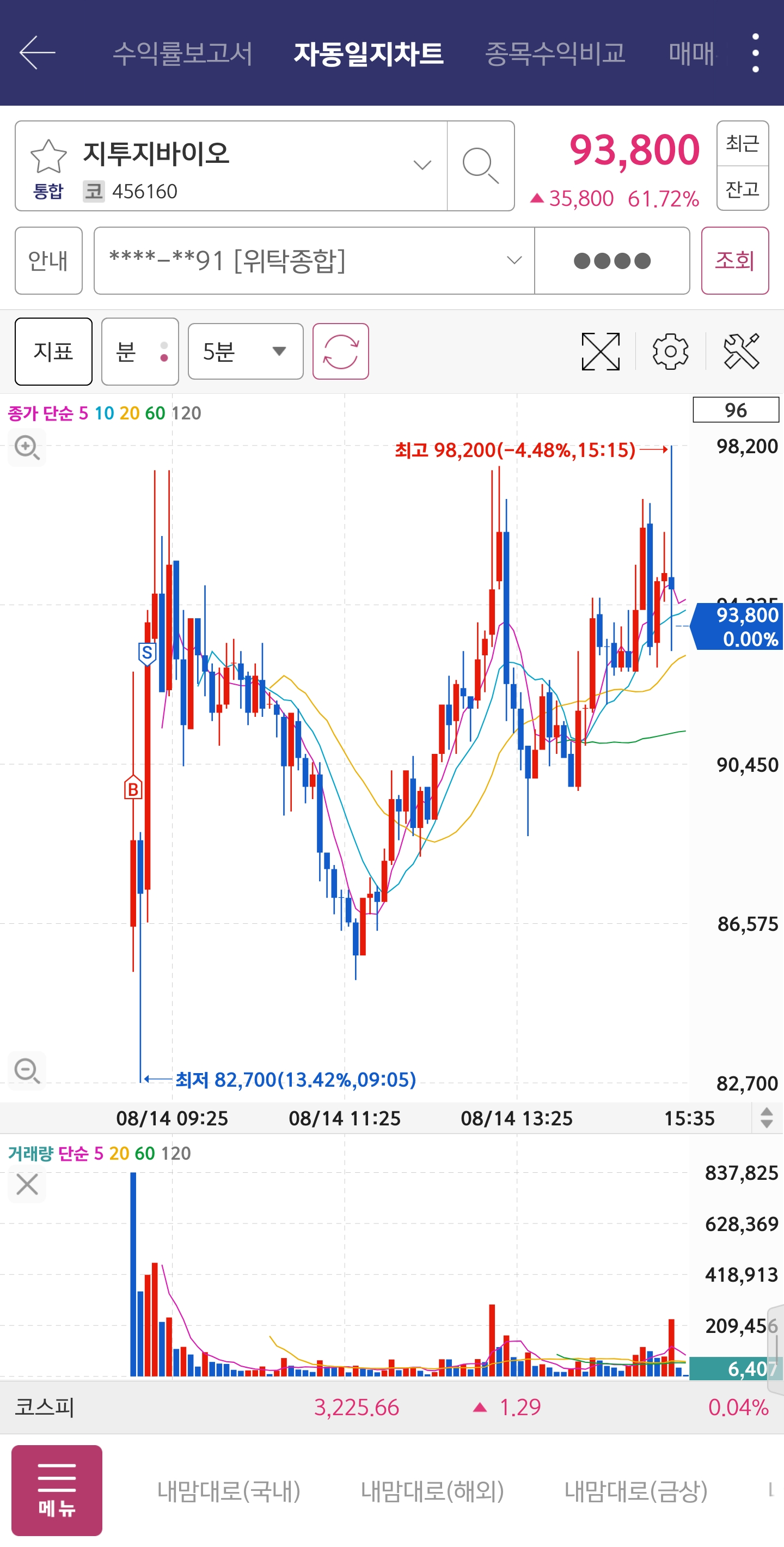- 종목: 지투지바이오 (456160) - 8월 14일 거래 진행