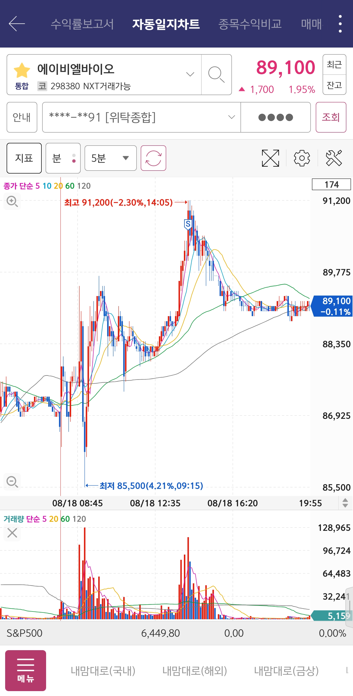 전고점 부근에서 힘이 약해지는 게 보여서 ‘욕심부리지 말자’ 생각하고 분할 매도. 수익을 챙기는 게 우선이라고 판단했다.