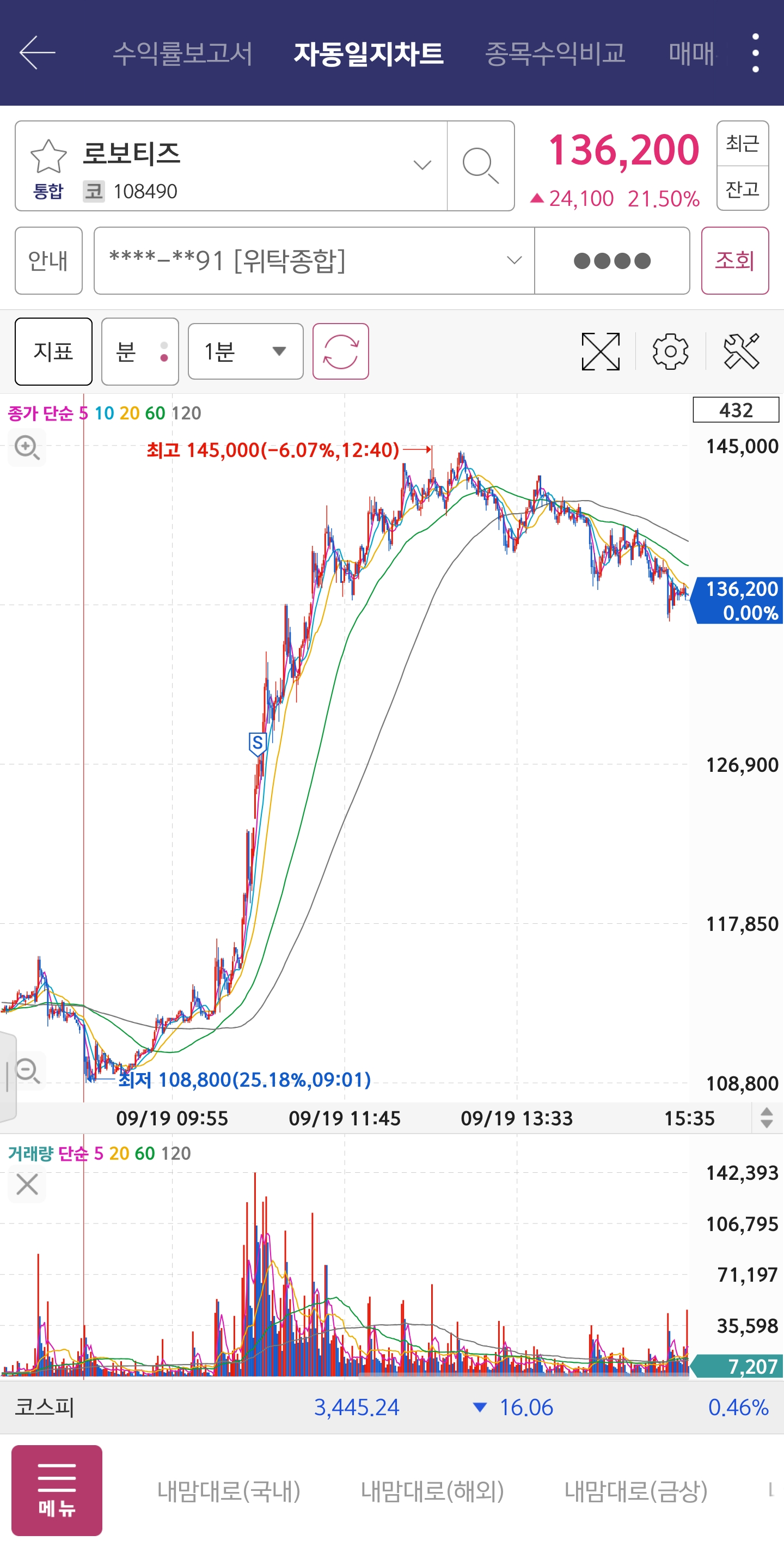 1️⃣ 로보티즈 (+8.71%/+91,582원)