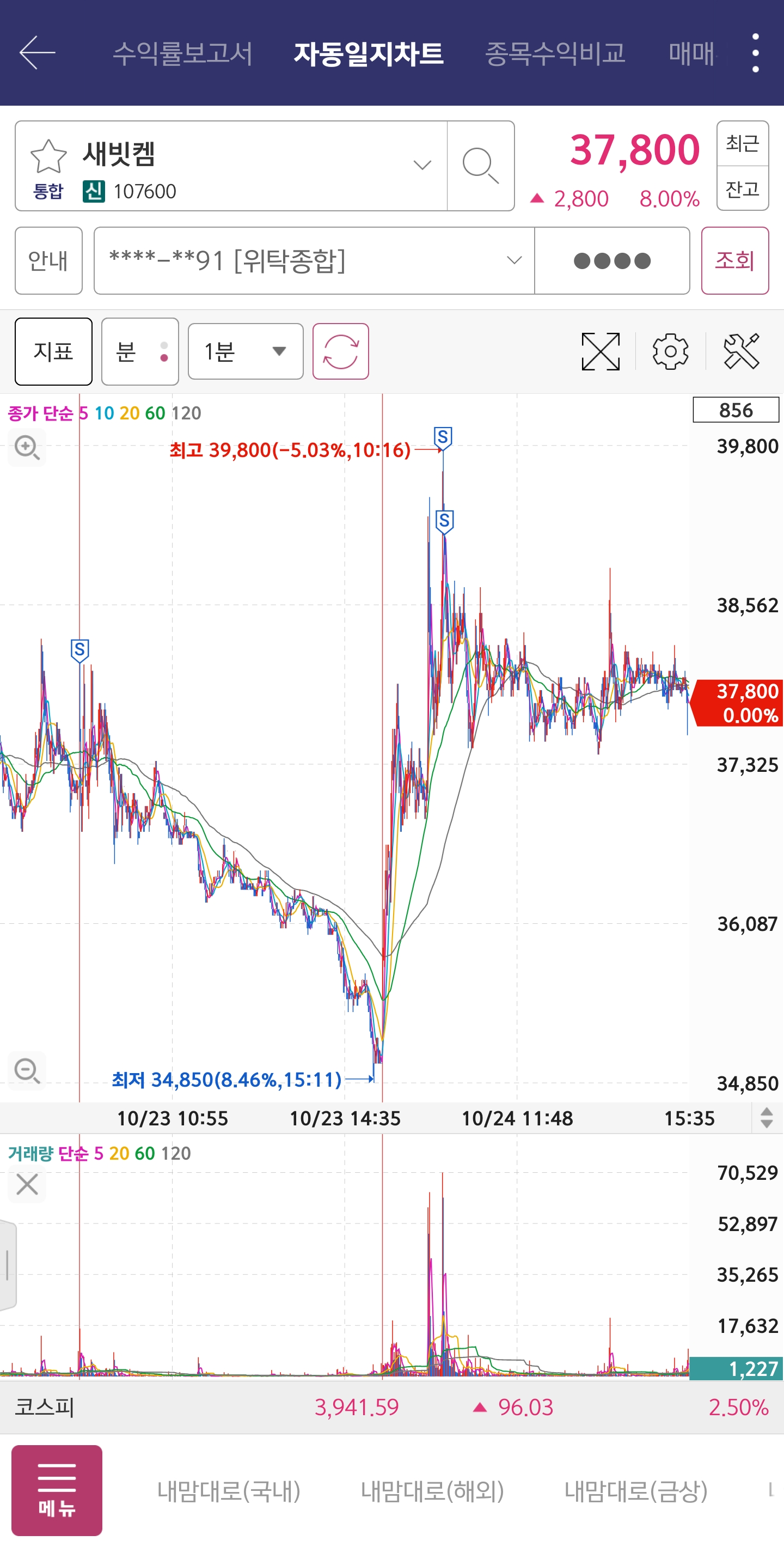 - 보유 중이었는데 1차 VI(변동성 완화장치) 발동을 보고 매도 준비.