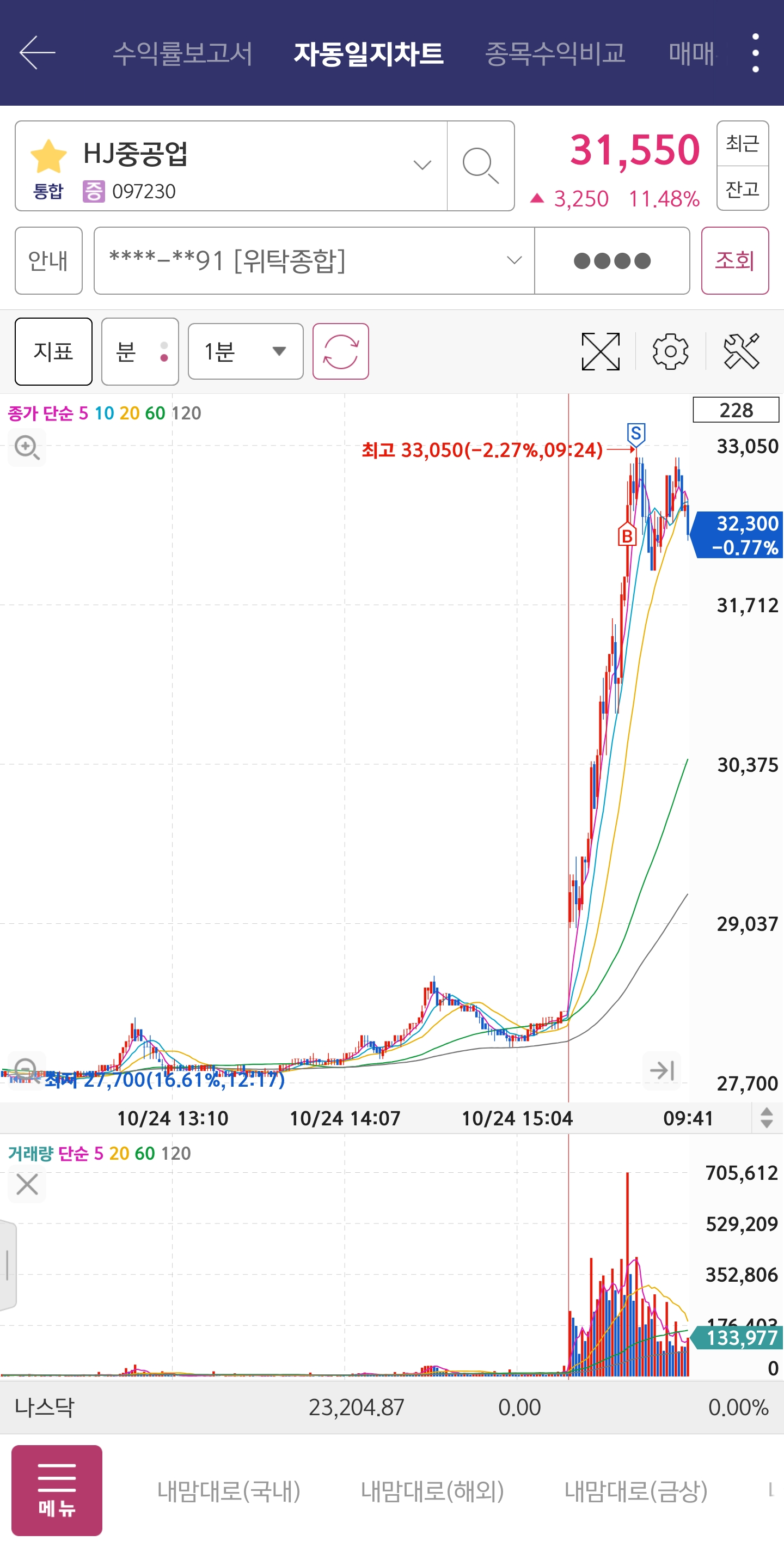 → 내일까지만 매매, 수요일부턴 보수적 관점으로 대응 예정