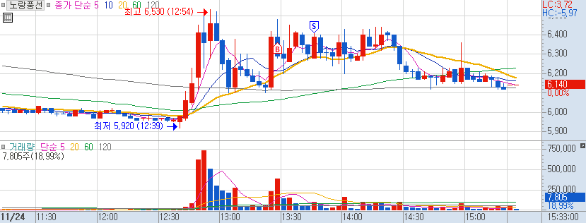 순간체결량에 강한 매수세로 오늘 하루종일 자주보이는 종목이라서 눌림목 매수 / 상승에 매도