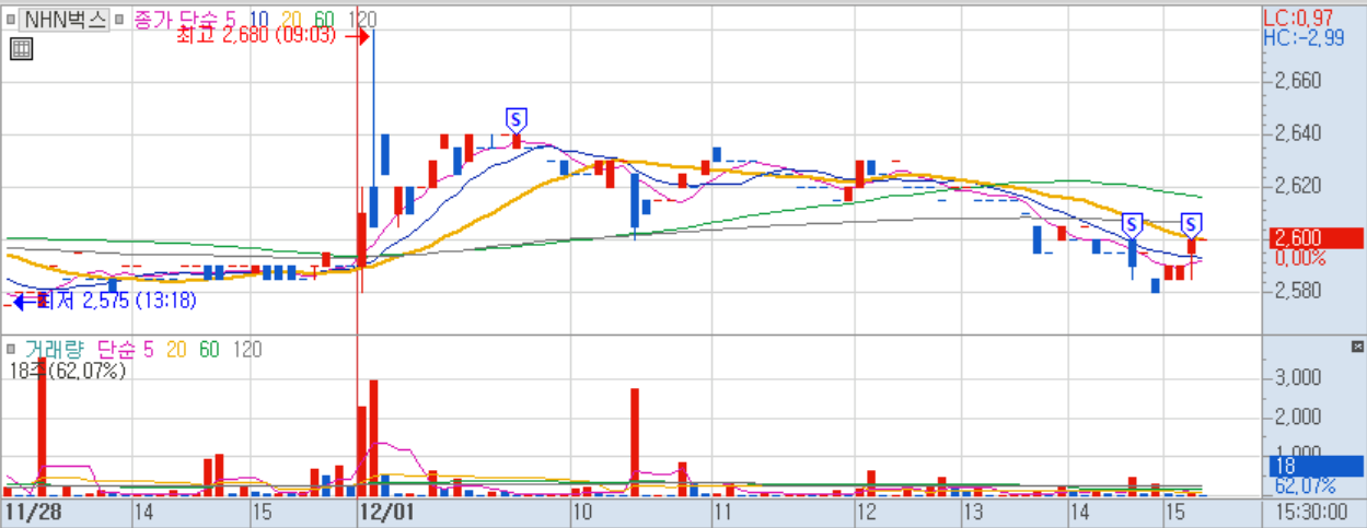 아침에 약시세주다가 오후에 전체적으로 지수 빠지면서 하락하길래 전량 매도