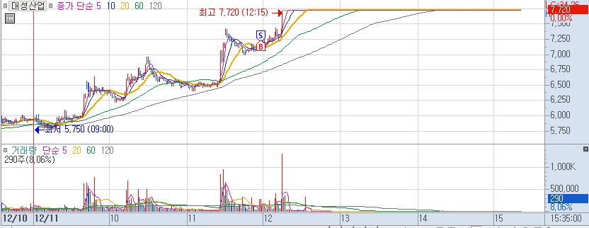 매도이유: 1차에서는 익절했으나, 2차에서는 힘이 약해서 매도(요즘 상한가 간 게 많아서 상한가 갈 줄 알았으나 힘이 약했음)