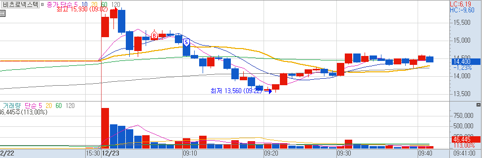 장초반에 흐름대로 안 가서 손절했다가 시세주는 것 확인하고 횡보에 매수하여 불타기 하고 고점 매도