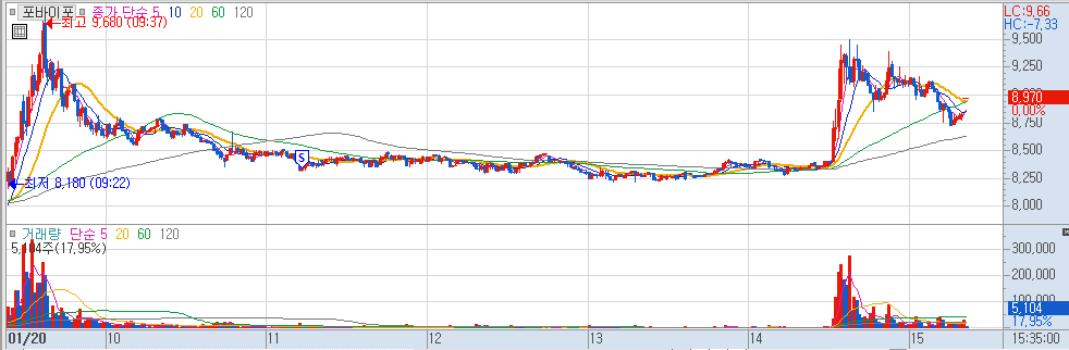 상한가 찍고 거래량 줄여서 하락하길래 숨 고르기라고 생각해서 종베로 가져온 종목